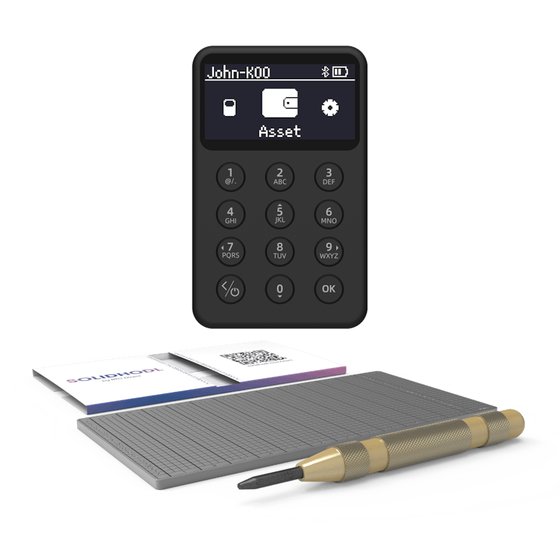 Protect your crypto with the perfect combination of SafePal X1 and SOLIDHODL. Use the SafePal X1 hardware wallet to keep your crypto safe from hackers. Combine this with SOLIDHODL to create a backup of your 24-word recovery seed that is resistant to fire and other extreme conditions. Together, they protect your crypto assets so you can invest in crypto with complete peace of mind.