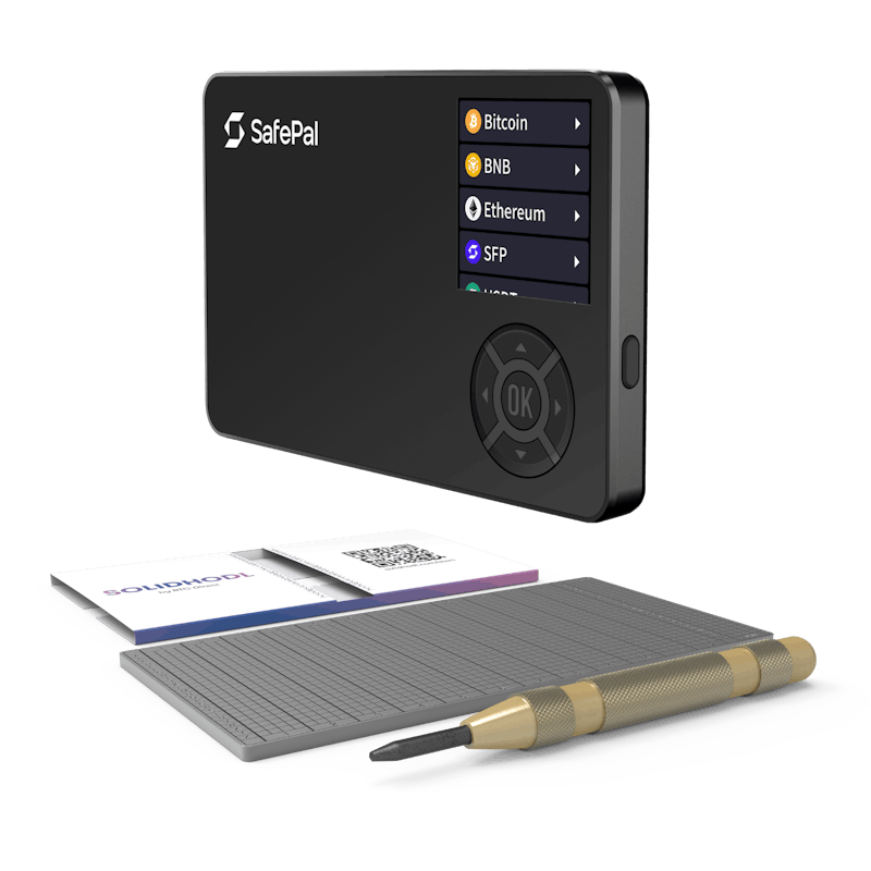 Protect your crypto with the perfect combination of SafePal S1 and SOLIDHODL. Use the SafePal S1 hardware wallet to keep your crypto safe from hackers. Combine this with SOLIDHODL to create a backup of your 24-word recovery seed that is resistant to fire and other extreme conditions. Together, they protect your crypto assets so you can invest in crypto with complete peace of mind.