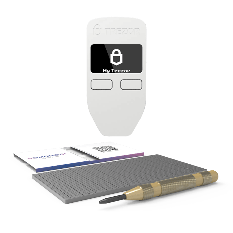 Protect your crypto with the perfect combination of Trezor One and SOLIDHODL. Use the Trezor One hardware wallet to keep your crypto safe from hackers. Combine this with SOLIDHODL to create a backup of your 24-word recovery seed that is resistant to fire and other extreme conditions. Together, they protect your crypto assets so you can invest in crypto with complete peace of mind.